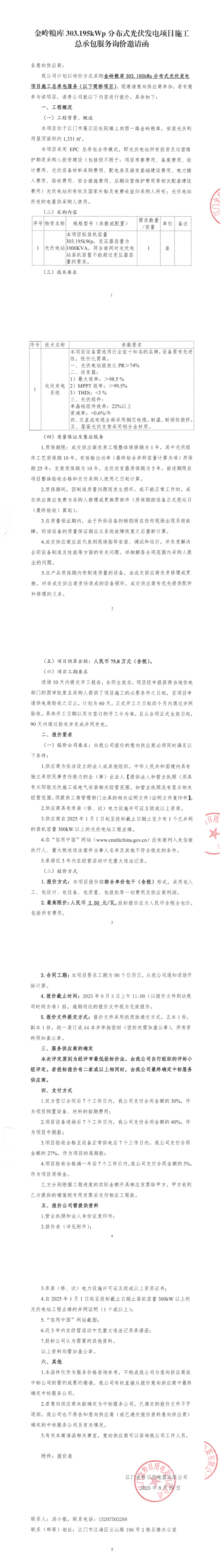 金岭粮库 303.195kWp分布式光伏发电项目施工总承包服务询价邀请函
