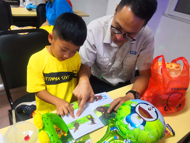 在集团二楼活动室,金羚集团精心准备了不同年龄段的儿童读物,孩子们在家长的陪伴下挑选两本喜爱的图书认真阅读,家长们指导孩子识记生字词,一方面引导孩子结伴阅读,提高孩子的阅读兴趣与综合能力,激发儿童的读书热情,营造良好的读书氛围;另一方面,家长与孩子在书籍中寻找快乐,厚植亲情,涵养良好家风,让书香陪伴孩子茁壮成长。
