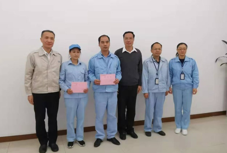 1月7日上午,市委党校校委委员叶开枝等慰问三菱重工金羚空调器有限公司困难职工。