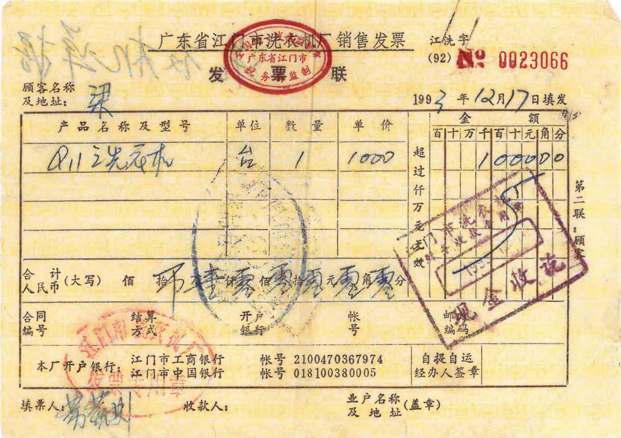 近日,江门市洗衣机厂收到一封没有具体地址、仅写着“江门市金羚牌洗衣机厂”的感谢信。写信的是肇庆年过八旬的梁伯,他因不知厂家地址,仅凭“金羚”这一品牌名,抱着“碰碰运气”的心态将信寄出。信中,梁伯激动地分享了自己1993年购买的一台金羚牌洗衣机,至今已无故障运行32年,仍能正常使用。他不仅为金羚产品的卓越质量点赞,更主动提出将这台“老古董”送回“娘家”——江门市洗衣机厂。我厂看到信件后,迅速联系了梁伯,并派专人上门取回洗衣机,同时收到梁伯珍藏的原始发票及手写感谢信。这一温情故事,不仅见证了金羚品牌经久耐用的品质,更成为“中国制造”历久弥新的生动诠释。