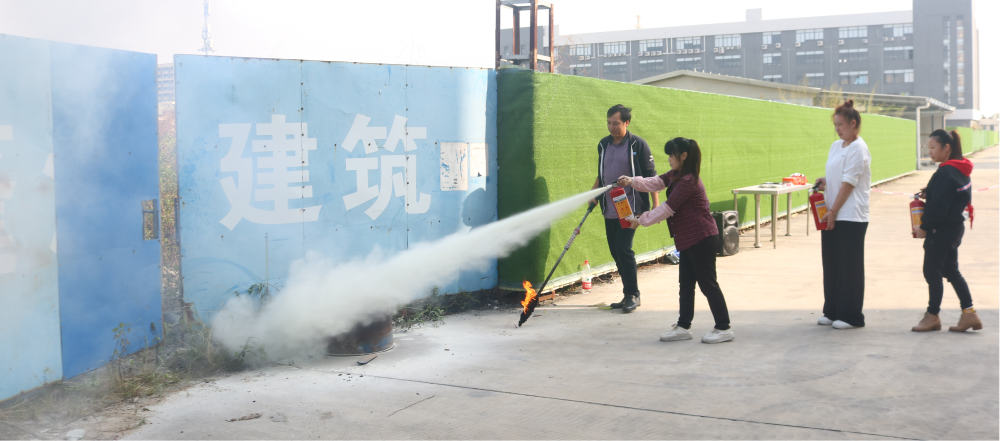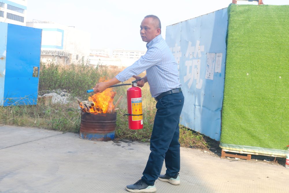 公司安委办向大家展示各类消防器材装备,并详细说明了干粉灭火器的使用方法,员工们使用灭火器进行灭火实操演练,“零距离”学习消防安全知识。