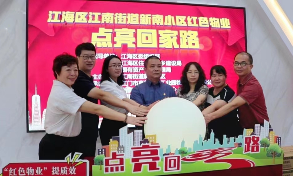 江海区委组织部、江海区国有资产监督管理局、江南街道有关负责人、新中社区党员志愿者及居民代表、金羚集团党员代表等参加活动。