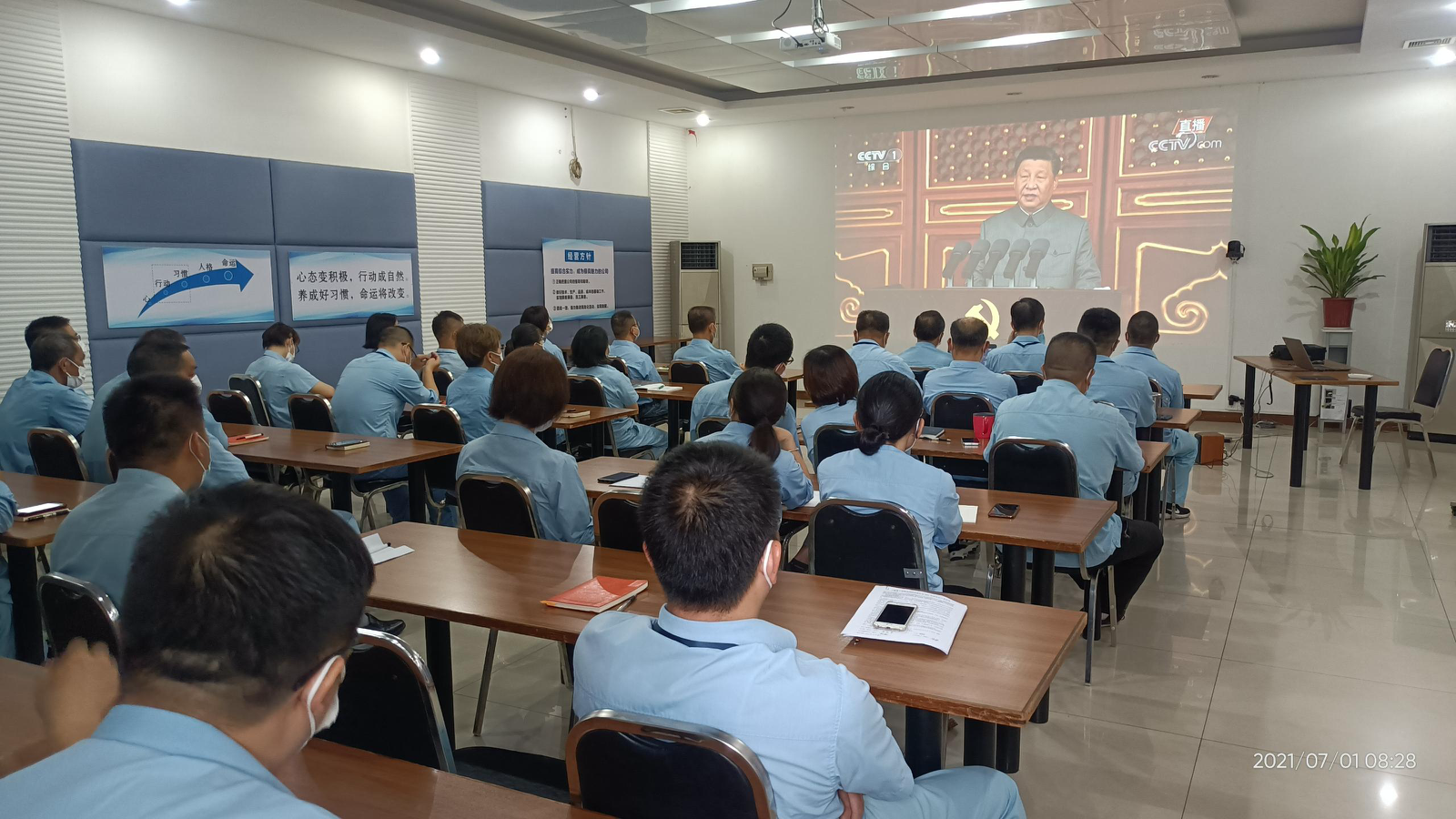 7月1日上午8时,庆祝中国共产党成立100周年大会在北京天安门广场隆重举行。金羚集团党委组织全体党员认真收听收看大会直播盛况,聆听习近平总书记的重要讲话。